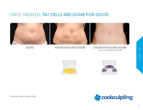 Once the treated fat cells are crystallized (frozen), they die and are naturally processed and eliminated from the body. Once the treated fat cells are gone, they're gone for good.
