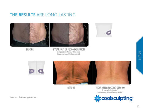 Your CoolSculpting® physician will help you create an individualized treatment plan tailored to your specific goals. The length of your CoolSculpting® session will vary depending on the number of areas being treated during one visit. You and your provider may schedule additional sessions to meet your goals. Many people read, check email, or even take a nap during their sessions.